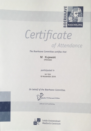 Uczestnik studiów doktoranckich w Centrum Medycznym Kształcenia Podyplomowego.